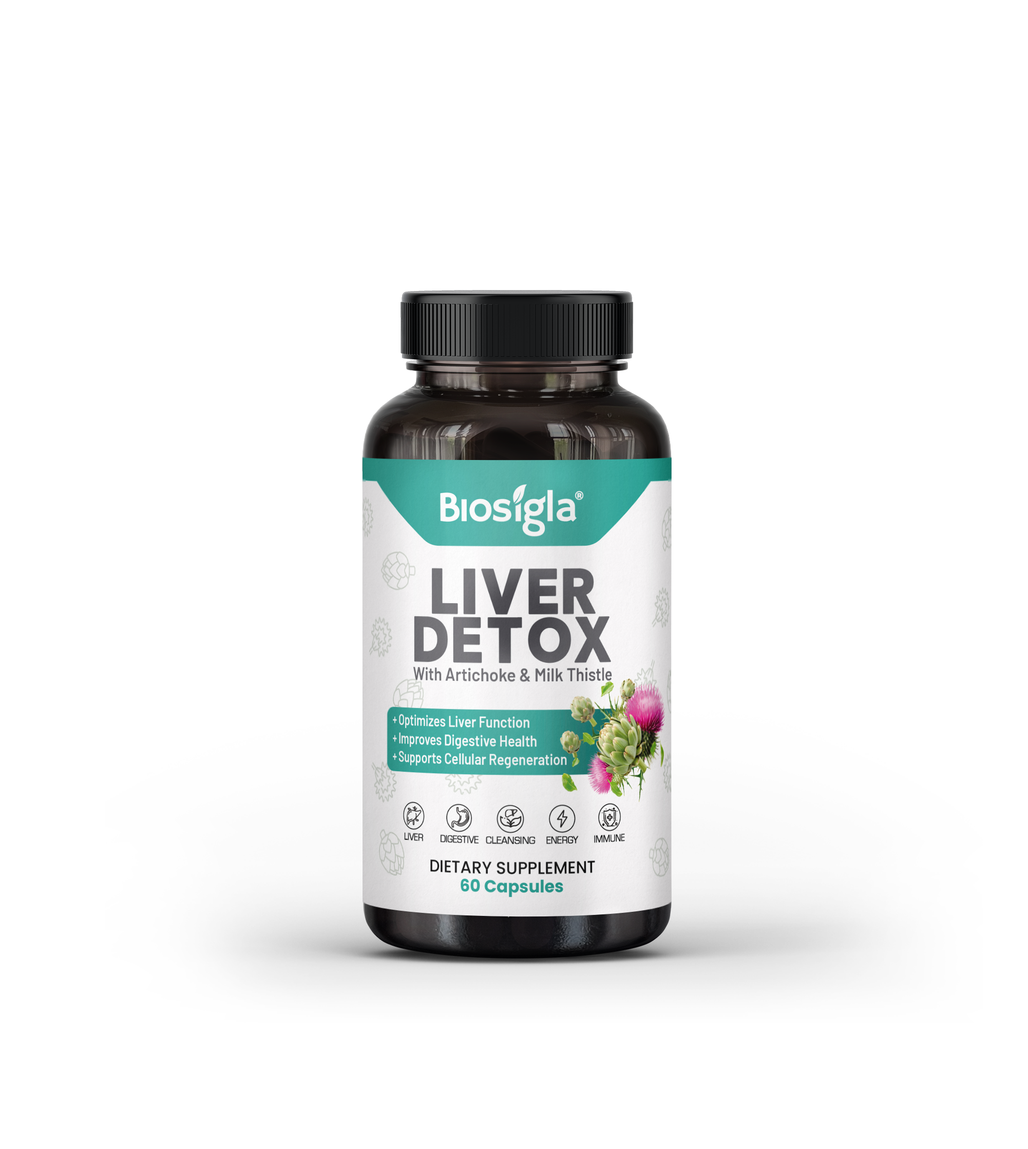 - Biosigla - Liver Detox Herbal Capsules - Bottle with 60 veggie caps included.