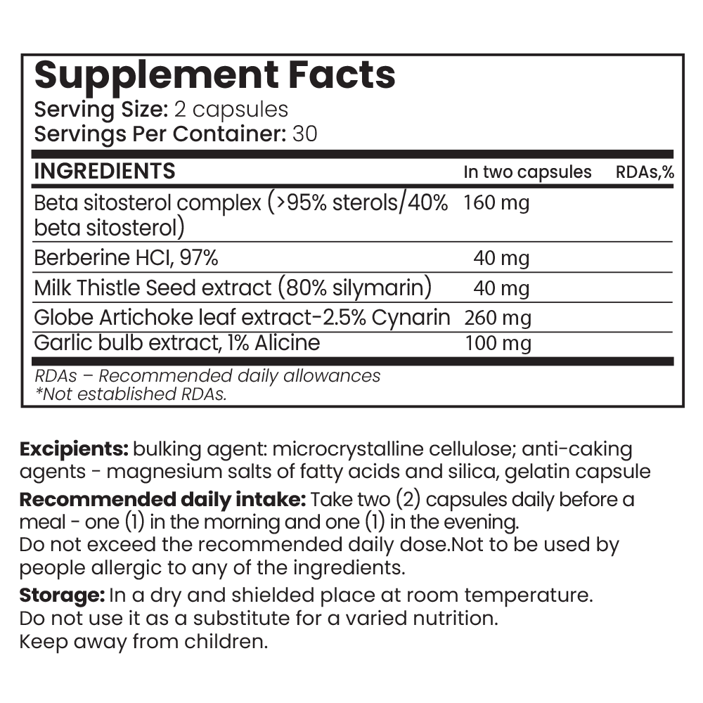 Una fórmula botánica totalmente natural y estandarizada que aporta compuestos vegetales específicos para favorecer la salud del colesterol, el corazón y el hígado.