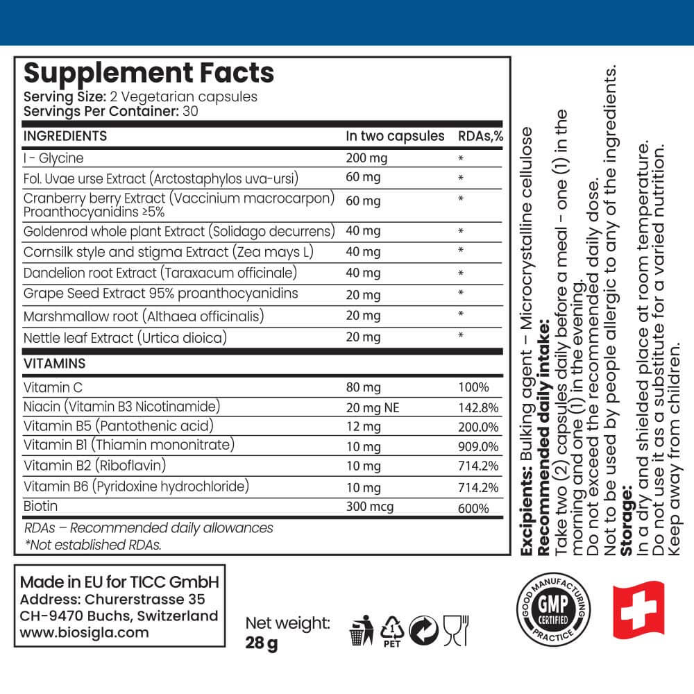 La mezcla botánica desintoxicante patentada ayuda a sanar y previene la reaparición de las infecciones urinarias.